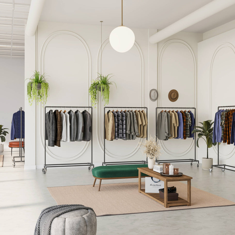 Vi på RackBuddy vet att utrymme är en värdefull resurs, särskilt i moderna hem och butiker där varje kvadratmeter räknas. Därför presenterar vi stolt RackBuddy Ringo - Klädställning på hjul, en innovativ lösning som kombinerar stilren design med praktisk funktionalitet. Denna klädställning är skapad för att stretcha din vardagsrums- eller butiksinredning och optimera din plats på ett smart och elegant sätt.