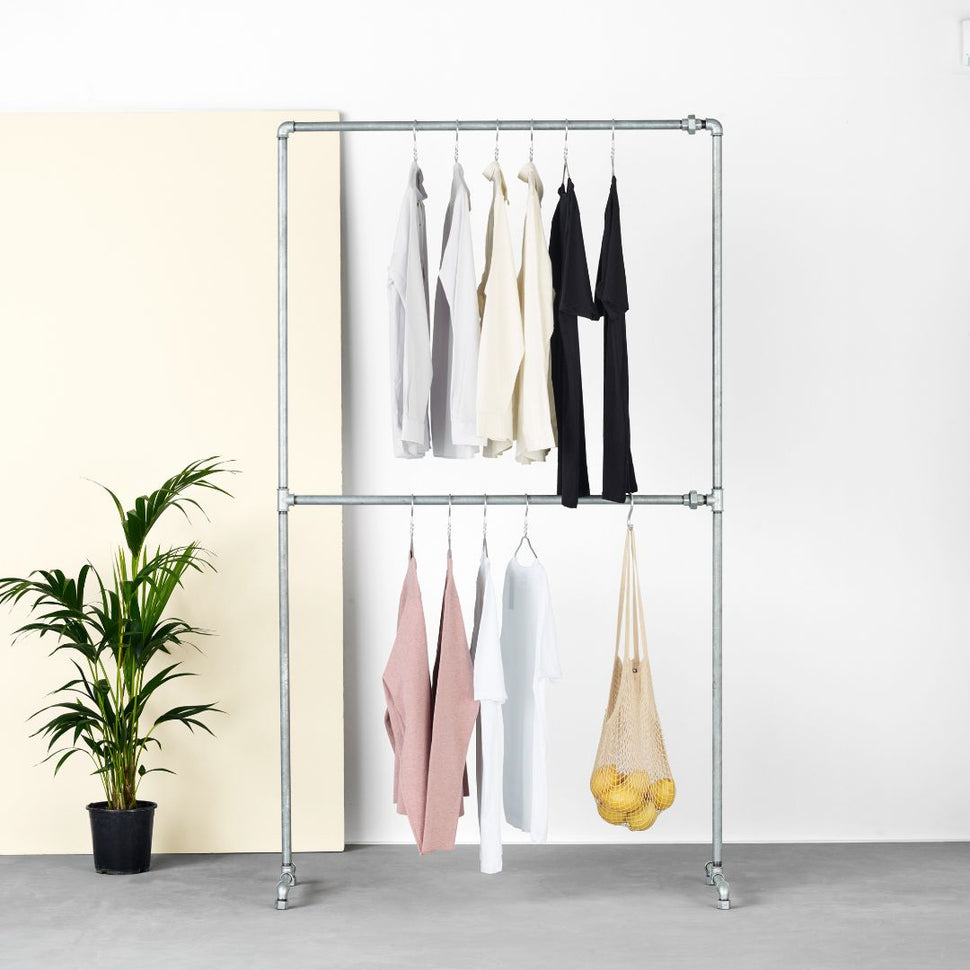 Dubbla klädstänger: Få plats med ännu fler kläder på minimal golvyta.