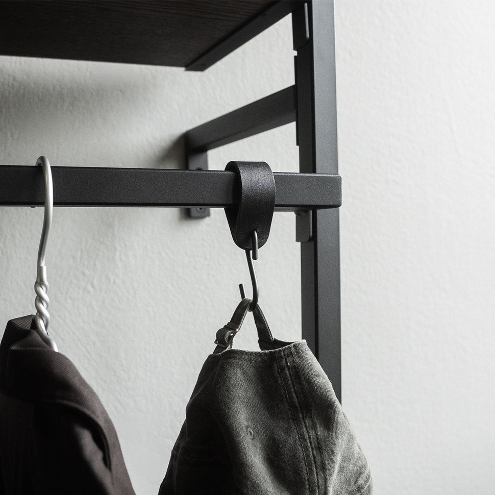 Klädkrokar: Låt din kreativitet flöda med våra mångsidiga krokar! Använd dem för att organisera väskor, smycken, köksredskap och till och med blomkrukor. Välj mellan S-krokar med läderremmar, aluminiumkrokar eller våra snygga svarta O-krokar för rör. Dessa krokar ger inte bara funktionalitet utan också en elegant touch till alla inredningar.