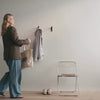 I princip kan våra klädställ monteras på alla väggtyper, även gipsväggar. Vid montering är det dock alltid viktigt att använda rätt typ av plugg. Pluggarna som ingår i leveransen är universalpluggar och är för vissa väggar inte de bästa. Vi rekommenderar därför att du tar reda på vilka pluggar som passar bäst för just din vägg. Observera att för klädstänger som endast är monterade i vägg eller tak beror ställningens stabilitet mycket på väggens bärförmåga. Bärförmågan varierar från vägg till vägg och bör bedömas av en hantverkare på plats. För väggar med lägre bärförmåga rekommenderar vi klädställ med golvstöd för att avlasta väggen. Exempel på detta är vår Bob Steele eller våra Walk-In-modeller.