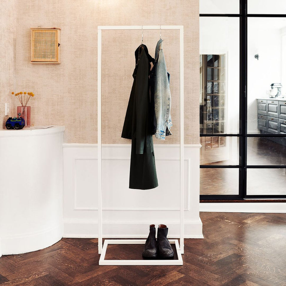 Vår Frame Little Georgia - Vit klädställning med kvadratisk botten är en del av vår populära Frame Collection. Den geometriska designen hyllar enkelheten och elegansen i dansk design samtidigt som den ger maximal opbevaringskapacitet i de mindre utrymmena, vare sig det är i hallen, sovrummet eller en walk-in-closet.