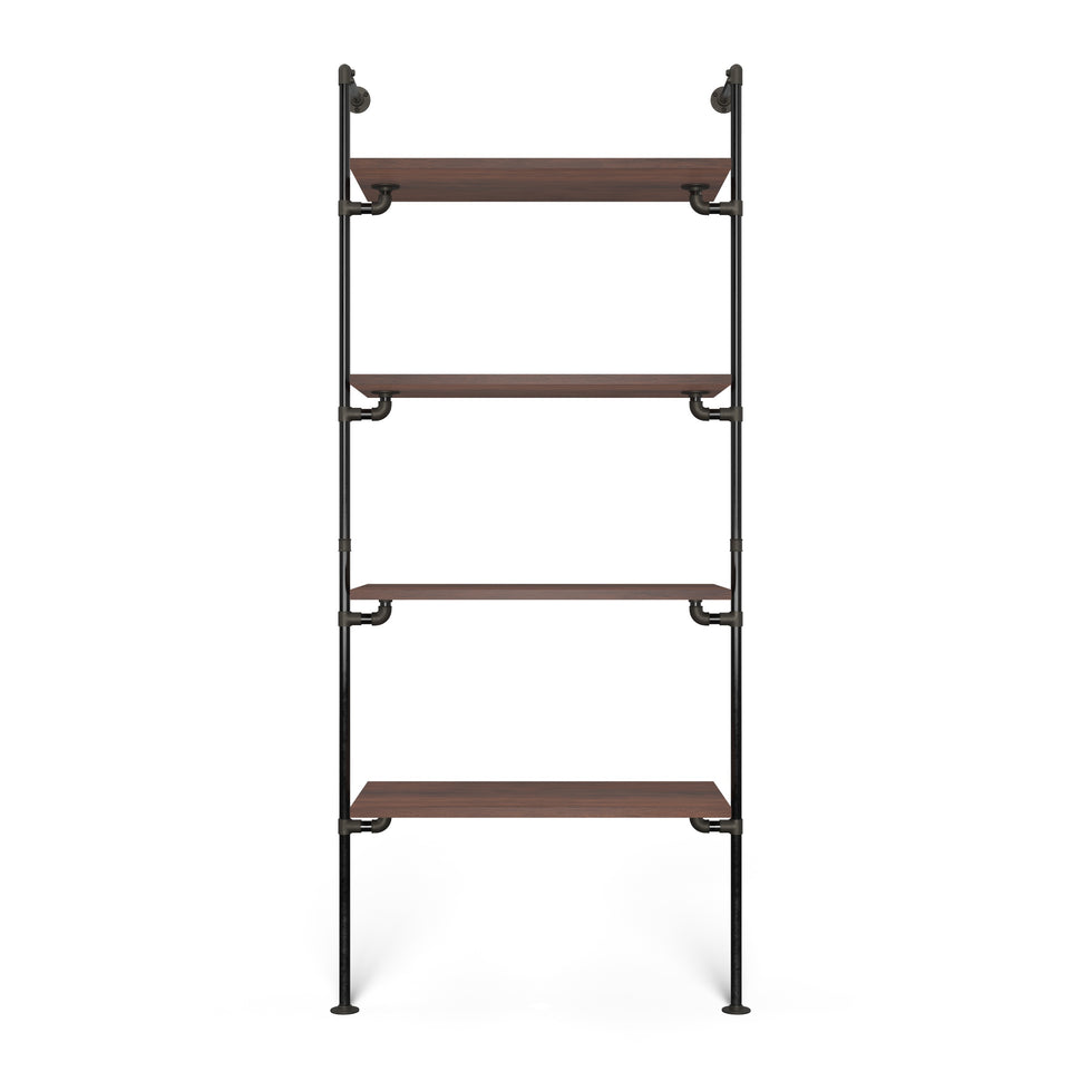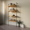 Justerbara hyllor: En sektion med fyra trähyllor som kan anpassas i höjdled för att ge dig maximal flexibilitet.