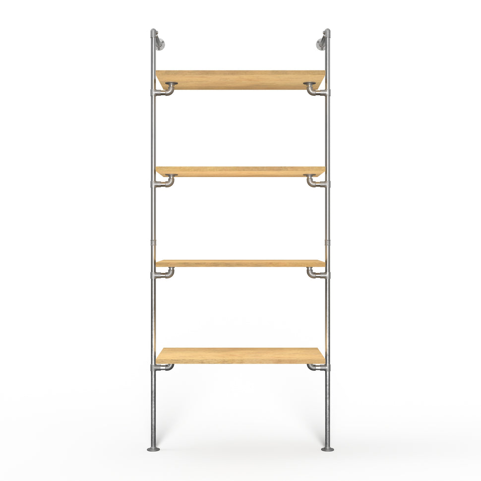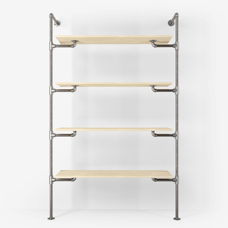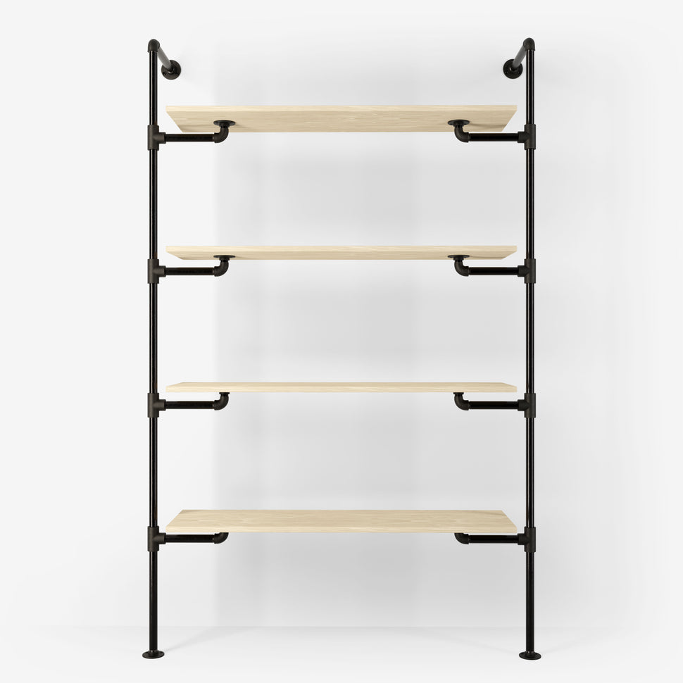 Total bredd: Den totala bredden beror på vilken storlektsvariant du väljer. Du kan välja mellan 50, 80, 120 cm. Notera dock att måtten avser sektionens innermått, d.v.s. bredden på hyllorna. De räknar inte med de vertikala rörens storlek som adderar ca 5 cm per rör. Till exempel så kommer den totala bredden för varianten 50 cm vara ca 60 cm i verkligheten.