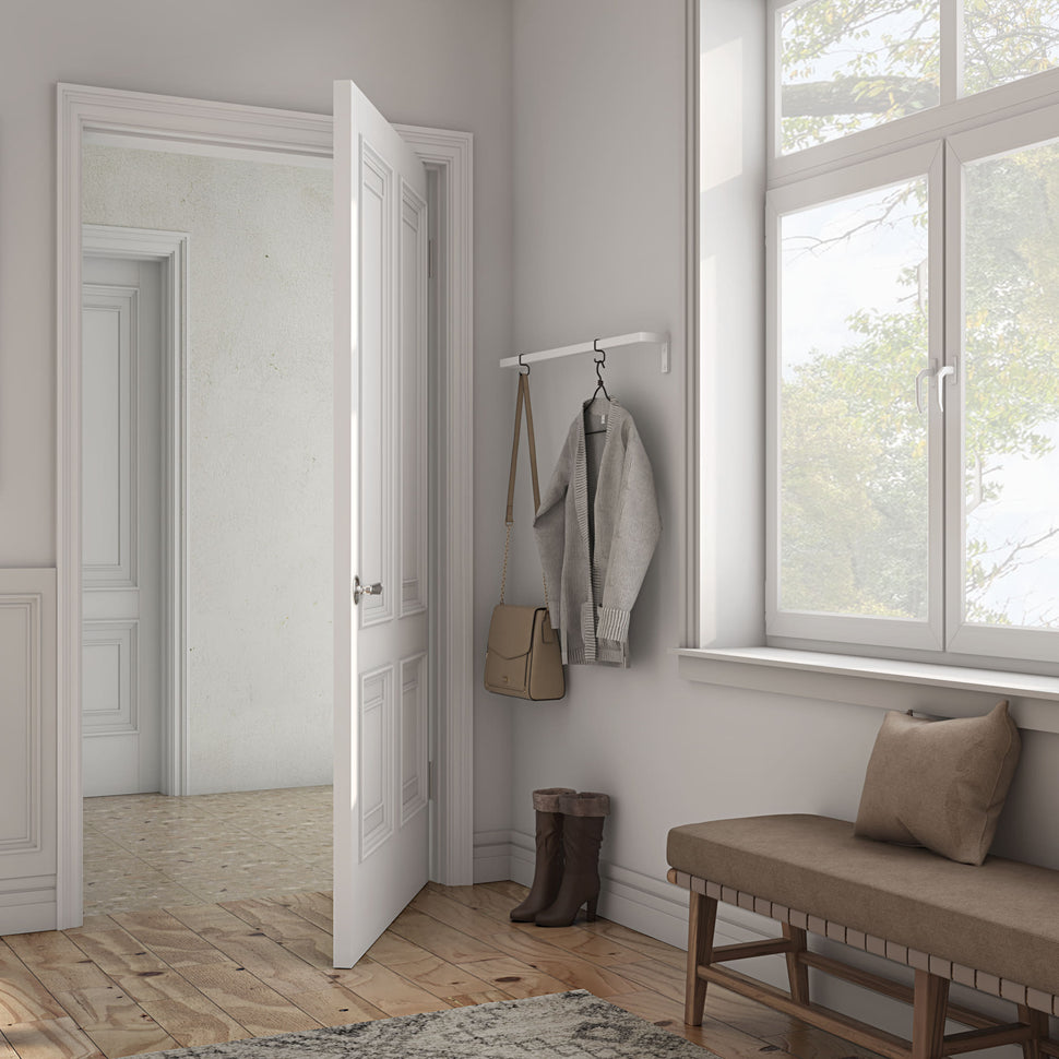 Vi på RackBuddy förstår hur begränsat utrymme kan påverka din vardag. Med vår innovativa produkt, Frame Jolene - Stång till krokar, erbjuder vi en modern och funktionell lösning som optimerar varje hörn i ditt hem. Oavsett om du behöver hänga upp skor, jackor, väskor, byxor eller handdukar, gör vår stång att allting hittar sin plats på ett smidigt och stilrent sätt.