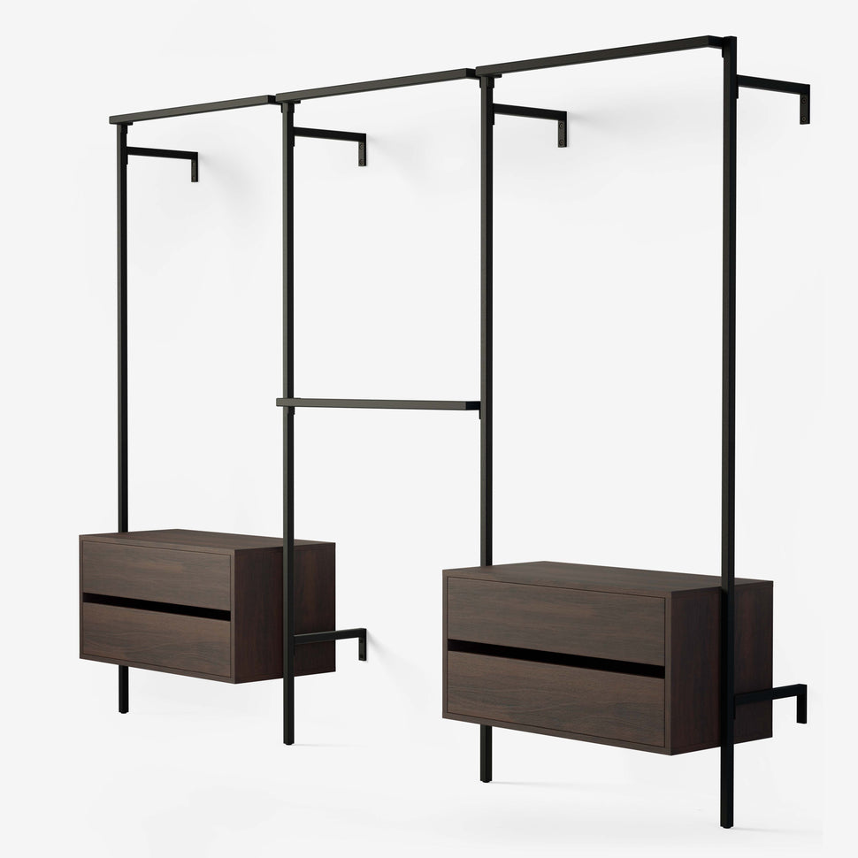 • Frame Walk-In förvaringssystem med 3 sektioner och byråer