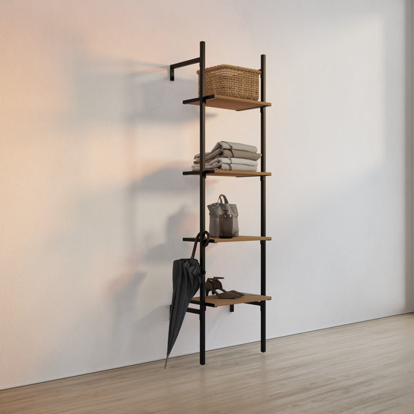 Frame walk-in-lösningar kan bli en både funktionell och estetisk del av din inredning. Frame skiljer sig från vårt vanliga sortiment genom att produkterna är tillverkade med fyrkantiga rör istället för de klassiska runda rören i industrilook. Frame walk-in finns i svarta pulverlackerade profiler och vissa designelement erbjuds med olika träslag, som rökig ek i en elegant mörkbrun färg eller klassisk ek för ett ljusare intryck. På så sätt kan du skapa din egna, skräddarsydda Frame walk-in-lösning med våra olika element.