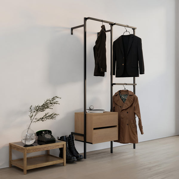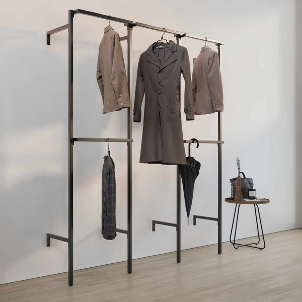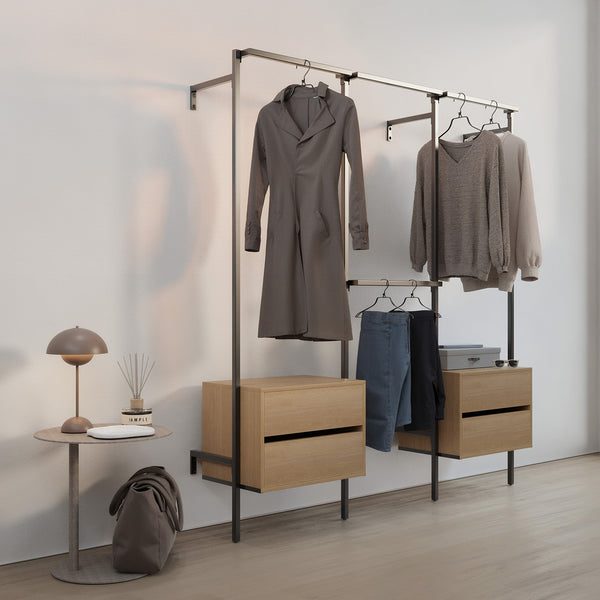 Upptäck -kollektionen från RackBuddy – vårt svar på individuella och stilrena förvaringslösningar för walk-in-utrymmen. Med sin minimalistiska design undviker Frame walk-in-kollektionen medvetet onöd... Mehr leseniga detaljer och tillför istället tydlighet, elegans och flexibel funktionalitet i ditt hem. Lösningarna från Frame walk-in-kollektionen kan enkelt integreras i olika inredningsstilar och skapar maximal överblick i din walk-in-garderob, ditt sovrum eller hall. Här hittar du walk-in-förvaringssystem som anpassar sig efter dina behov och samtidigt ger plats för personlig inredning. Upptäck nya sätt att organisera dina utrymmen – helt enligt dina egna önskemål.