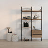 Välj mellan en ljusare, klassisk ekfanér och en mörkare, rökt variant att kombinera med hyllkonsoler i mattsvart.