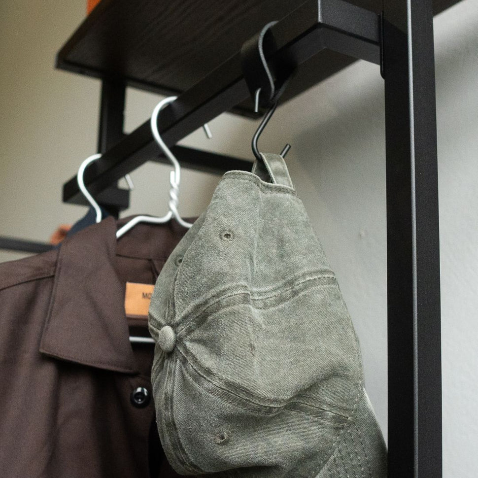 Klädkrokar: Låt din kreativitet flöda med våra mångsidiga krokar! Använd dem för att organisera väskor, smycken, köksredskap och till och med blomkrukor. Välj mellan S-krokar med läderremmar, aluminiumkrokar eller våra snygga svarta O-krokar för rör. Dessa krokar ger inte bara funktionalitet utan också en elegant touch till alla inredningar.