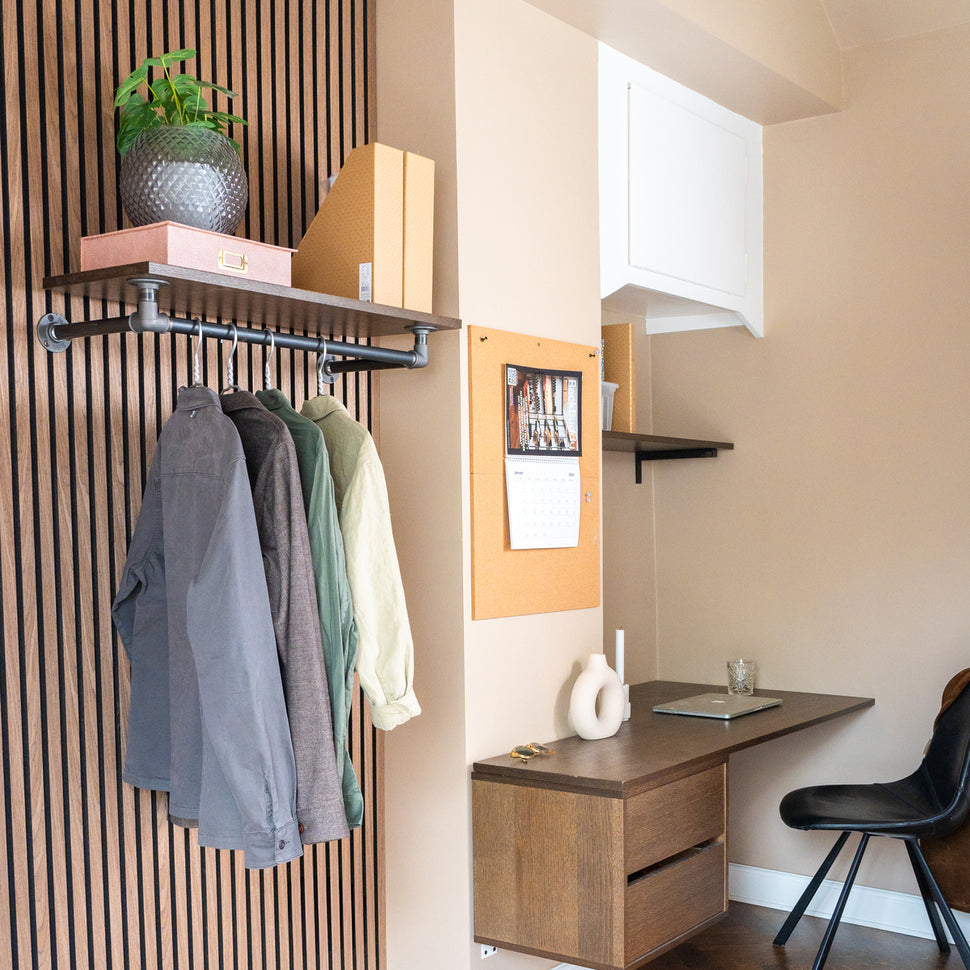 Upplever du att utrymmet inte räcker till i ditt hem? Med vår innovativa lösning RackBuddy Marlow - Vägghängd klädställning med hylla får du en stilren och funktionell förvaringslösning som inte tar upp värdefull golvyta. Vi på RackBuddy sträcker standarden för förvaring och designar lösningar som är anpassade för moderna, platsbegränsade miljöer.