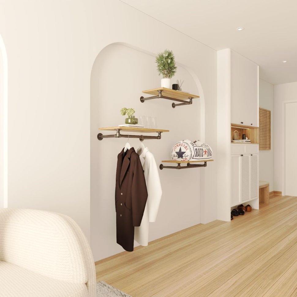 • Mångsidig förvaring: Hyllan ovanför klädstången erbjuder extra utrymme för personliga accessoarer såsom blommor, bilder och smycken.