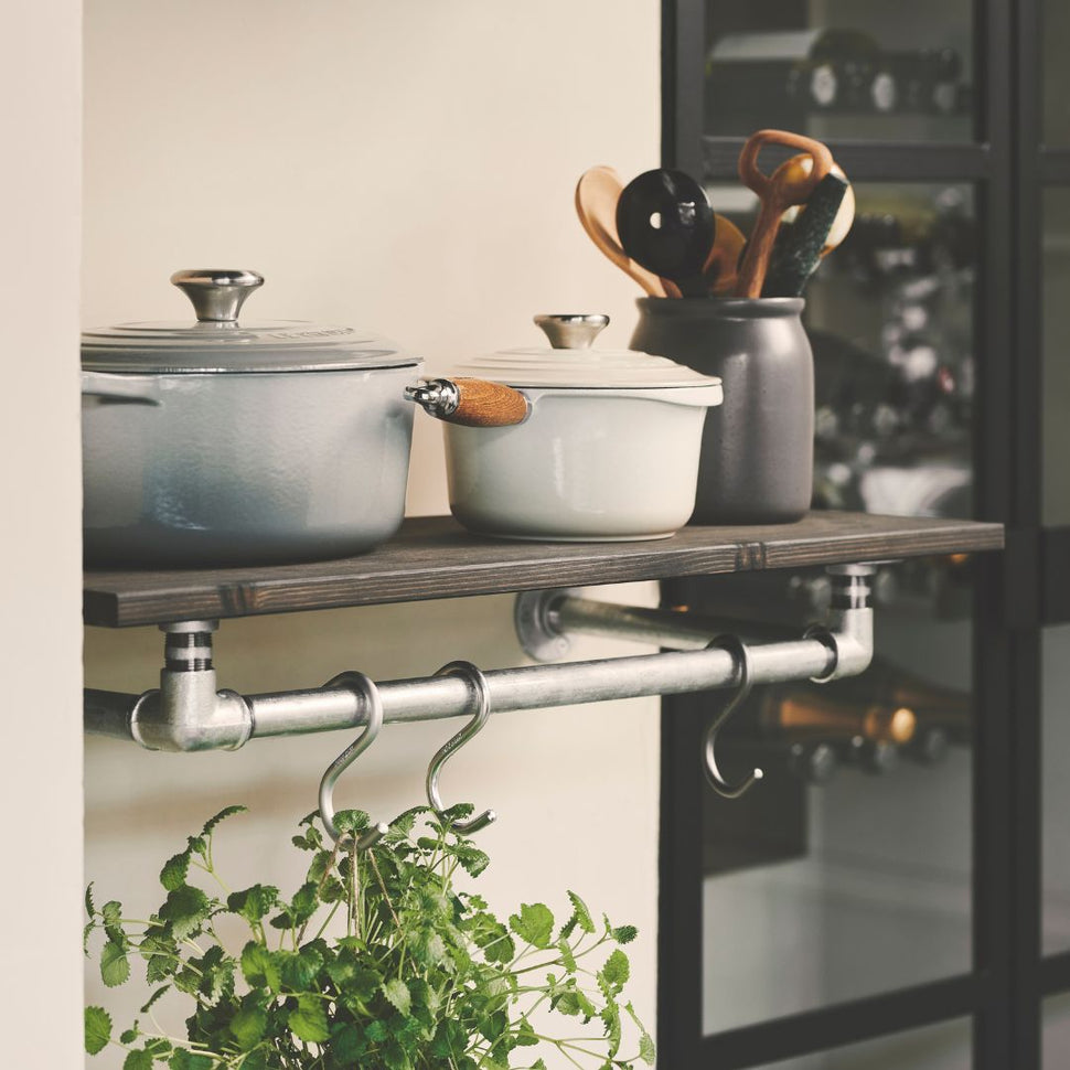 • Materialval: Välj mellan mörka och silvriga vattenrör med hyllalternativ i klassisk ek, rökt ek, ljus furu eller mörk furu för att matcha din inredning.