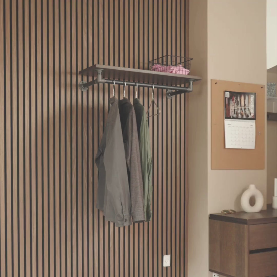 Vår lösning är utformad med hållbara material och ett tidlöst utseende. RackBuddy Marlow är idealisk för hallen, sovrummet eller andra rum där du vill maximera förvaringsutrymmet utan att offra design. Hyllans djup mäter 30 cm och det totala djupet från väggen är ca 40 cm – perfekta mått för att skapa en balanserad och harmonisk helhet.