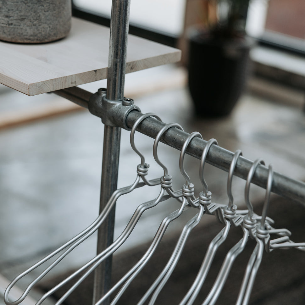 Klädkrokar: Låt din kreativitet flöda med våra mångsidiga krokar! Använd dem för att organisera väskor, smycken, köksredskap och till och med blomkrukor. Välj mellan S-krokar med läderremmar, aluminiumkrokar eller våra snygga svarta O-krokar för rör. Dessa krokar ger inte bara funktionalitet utan också en elegant touch till alla inredningar.