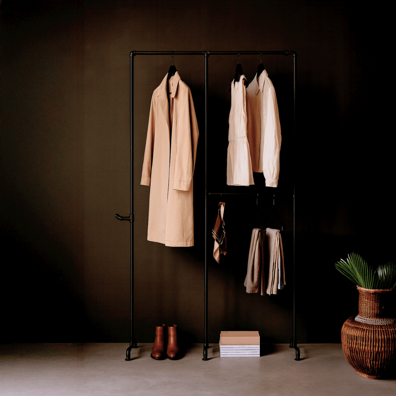 Oavsett om du inreder en liten lägenhet, en kreativ studio eller en öppen garderob, gör Wild Bill Elliot ett starkt intryck. Den mattsvarta stålrörskonstruktionen skapar en urban och stilren känsla som lyfter fram dina kläder.