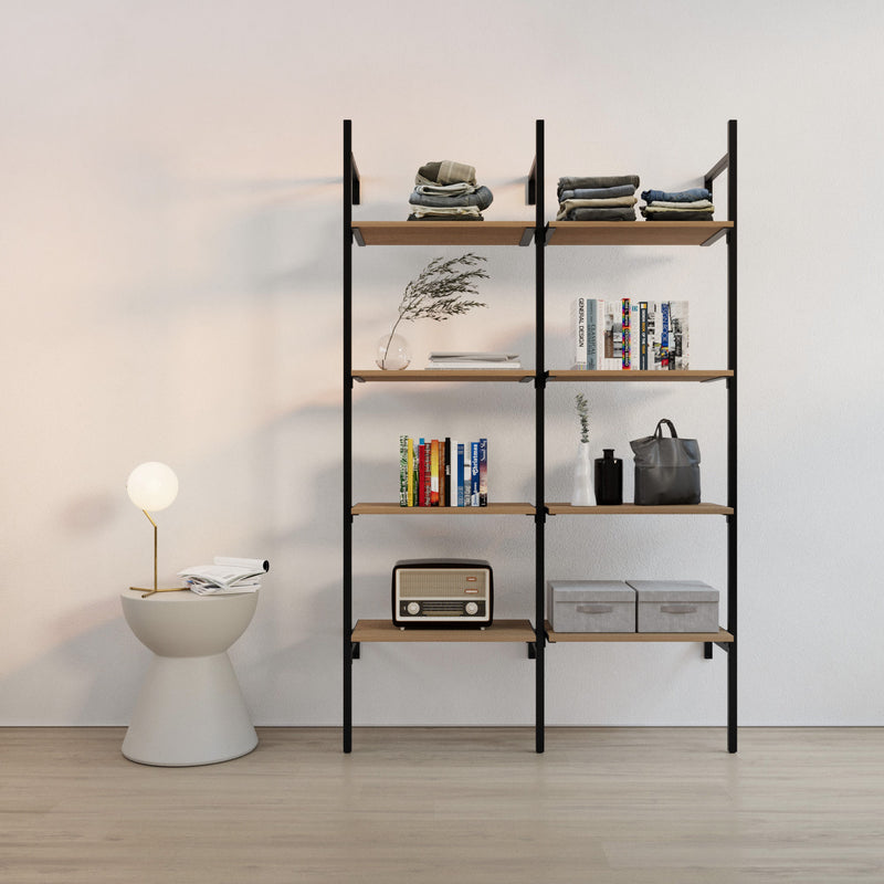 Maxa din förvaring med detta hyllsystem. Med totalt 8 stycken höj- och sänkbara hyllor i ek fördelat över två sektioner finns där mycket plats till förvaring av tröjor, byxor, skor eller väskor. Kombinera den med en annan modell från vår Frame Walk-In Collection för att skapa en komplett öppen garderob som uppfyller just dina behov. Hyllsystemet är lika bra på att skapa ordning i garderoben eller i sovrummet som i vardagsrummet. Där kan du använda det som en bokhylla eller för att sätta upp växter eller foton.